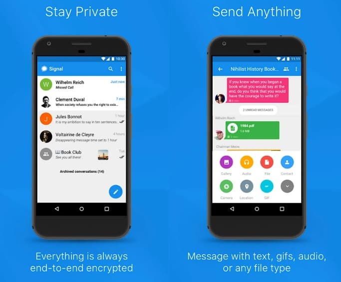Yang membuat aplikasi ini berbeda dengan aplikasi lainnya adalah terkait keamanan penggunanya dimana pihak developer aplikasi menjadi jika Signal anti penyadapan.