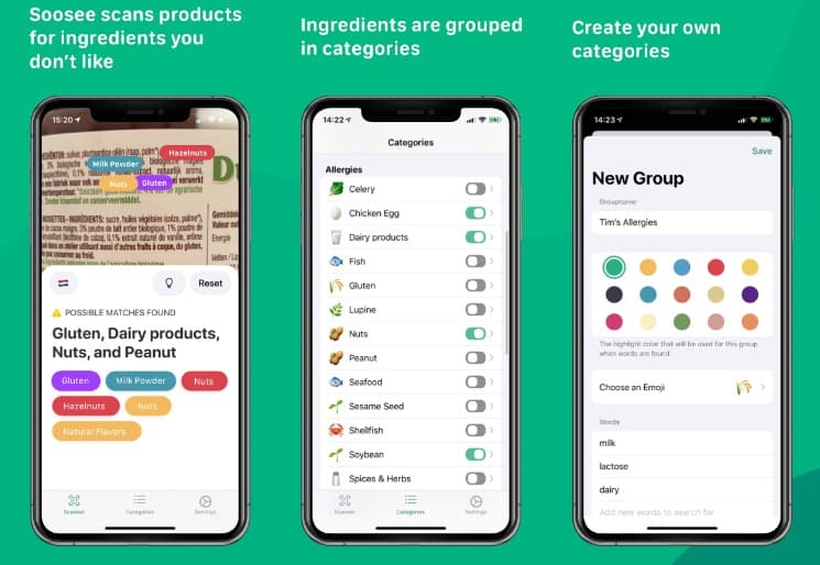 Dengan Soosee App sendiri dapat memindai lebih dari 30 jenis kategori makanan yang dapat dijadikan patokan untuk pengguna yang memiliki riwayat alergi umum, penganut gaya hidup vegan, serta wanita yang sedang hamil.