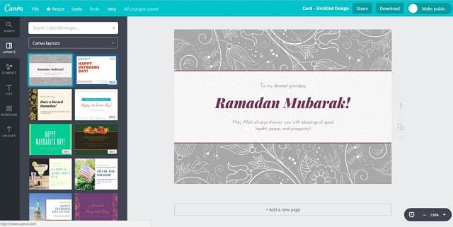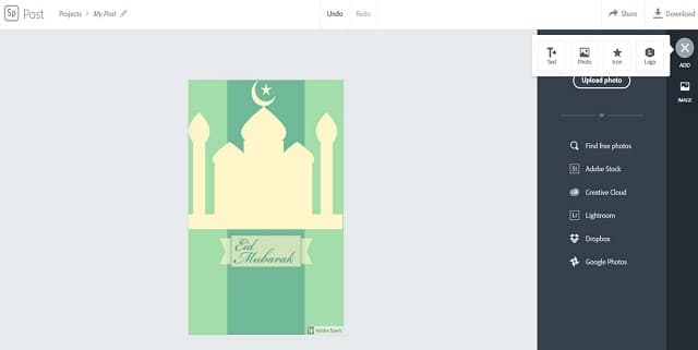 Hampir sama dengan dua aplikasi sebelumnya, dengan Adobe Spark anda juga bisa mendesain sendiri kartu ucapan Idul Fitri sesuai dengan keinginan anda. Tersedia cukup banyak pilihan layout yang bisa anda gunakan.