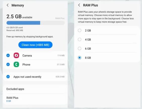 Untungnya, pihak Samsung sudah membekali perangkat ini dengan fitur untuk mengekspansi kapasitas RAM menjadi lebih besar dengan fitur yang dinamakan RAM Plus.