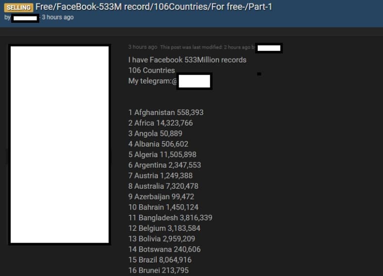 Dimana kebocoran data yang tersebut berasal dari kurang lebih 106 negara, bahkan termasuk pengguna Facebook dari Indonesia.