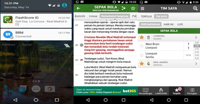 FlashScore ID (versi Android dan iOS), merupakan suatu bentuk teknologi terkini dalam dunia olah raga yang memberikan kita kemudahan. Meskipun gratis, tetapi tidak mengurangi kualitasnya dalam menyediakan banyak sekali informasi pertandingan yang ada.