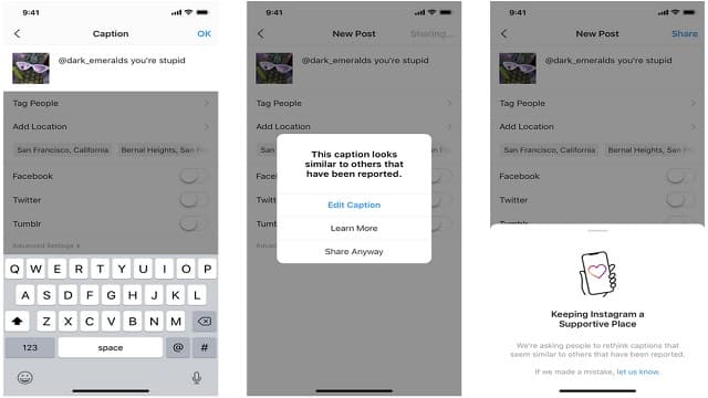 Fitur ini sendiri sudah mulai diberlakukan sejak sejak Senin (16/12/2019). Sehingga ketika pengguna akan menulis caption untuk unggahan Instagran, maka teknologi AI Instagram akan mendeteksi caption yang di tulis apakah ada kemungkinan bernada membully atau tidak.