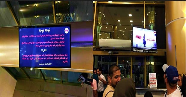 Pasalnya, beberapa layar atau monitor pemberitahuan tentang informasi kedatangan dan berangkatan penumpang tiba tiba berganti tampilan berisi pesan-pesan anti pemerintah serta pernyataan menentang kegiatan dan kehadiran pemerintah Iran dan militer di Timur Tengah.