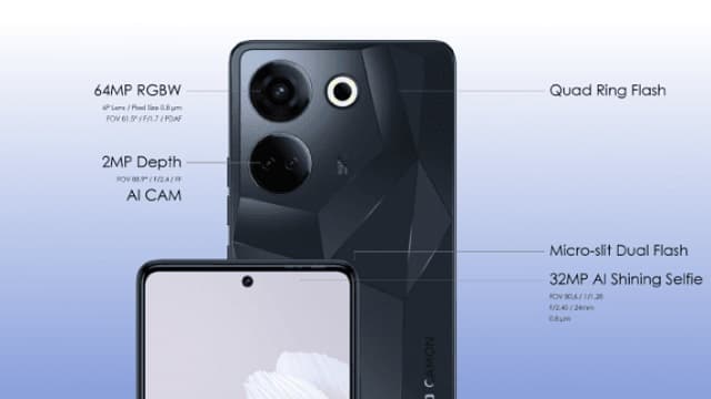 Untuk aspek fotografi, pada Hp terbaru dari Tecno ini dibekali dengan kamera yang terdiri dari dua lensa yaitu kamera utama 64 MP dan kamera depth sensor 2 MP. Dimana untuk kedua lensa kamera pada Hp ini dibenamkan langsung di punggung ponsel, tanpa modul kamera.